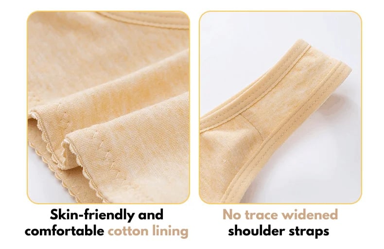 Comfortable everyday bra with wireless wide straps to relieve stress on shoulders and chest, perfect for sleep and everyday use.