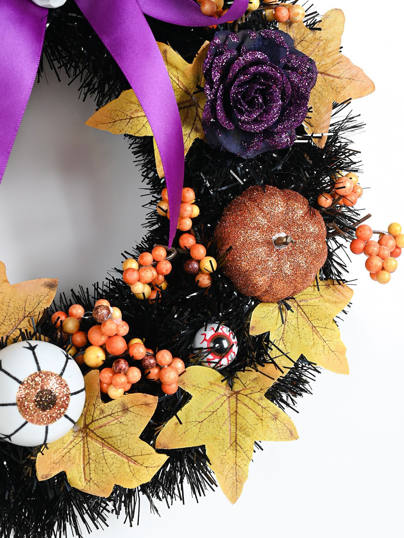 Application - During the holiday season, this Halloween wreath door hanging can be hung on the wall, on the front porch door, or even on the mantel. Or hang it outside the house, in the garden, or on the deck to add a strong Halloween atmosphere. It is an indoor and outdoor spooky home decoration, and everyone will love it!