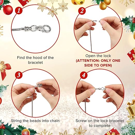 ✨【Easy installation of Christmas atmosphere】Unscrew to remove the end cap, After stringing in the beads, simply screw back the end cap tightly. No Tool, No Glue, No Mess.The beads can be interchanged easily without tools.